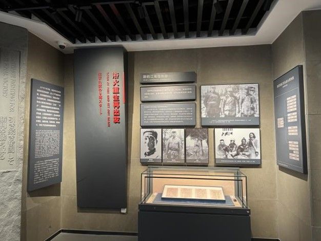大家首先走进指挥部旧址,斑驳的木质桌椅、简朴的军旅陈设,泛黄的电报手稿、磨损的作战地图,无声诉说着当年决策的艰难与智慧,生动再现了陈毅、粟裕等将领在此运筹帷幄的革命岁月;随后参观的主展厅以“铁军东进”为主题,通过诸多珍贵文物构建起立体历史画卷:锈迹斑斑的土制武器见证着装备悬殊下的顽强抗争,破损的绑腿水壶记录着艰苦卓绝的行军岁月,高科技陈列技术让党员们身临其境感受水西保卫战的烽火硝烟。在“军民同心”展区,展出的支前扁担、手纳布鞋等实物,生动诠释着“吃菜要吃白菜心、当兵要当新四军”的民心所向和新四军与老百姓的鱼水深情。